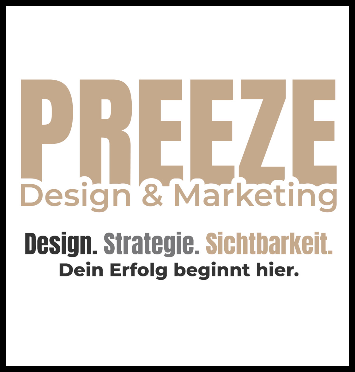 Kreativität trifft Strategie. Preeze Design & Marketing aus der Ortenau bietet alles für einen starken Unternehmensauftritt: Logo | Flyer | Speisekarten | Webseiten | Fahrzeug- und Fensterbeklebungen | Schilder & Banner | Marketingkampagnen. Mit Liebe zum Detail und Fokus auf Sichtbarkeit.