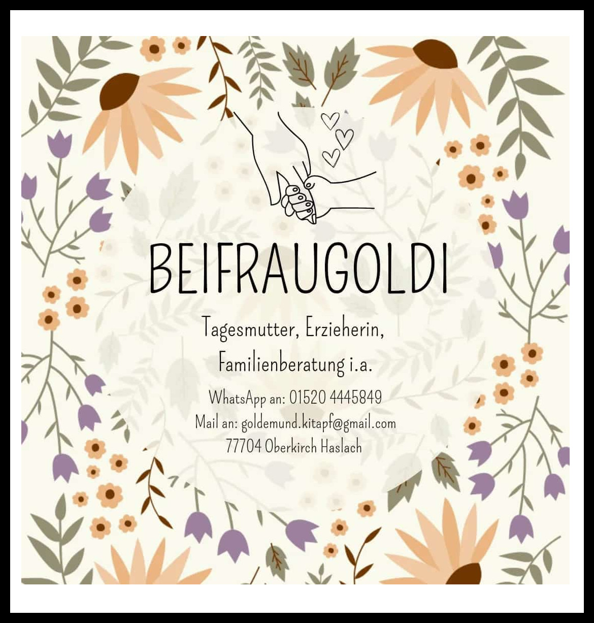 Hallo, ich bin Alana – Tagesmutter, Erzieherin & Familienberaterin. Für dich & dein Kind biete ich naturnahe, flexible Betreuung in kleiner Gruppe & ganzheitliche Beratung für Eltern mit Kindern zwischen 0 und 6 Jahre.